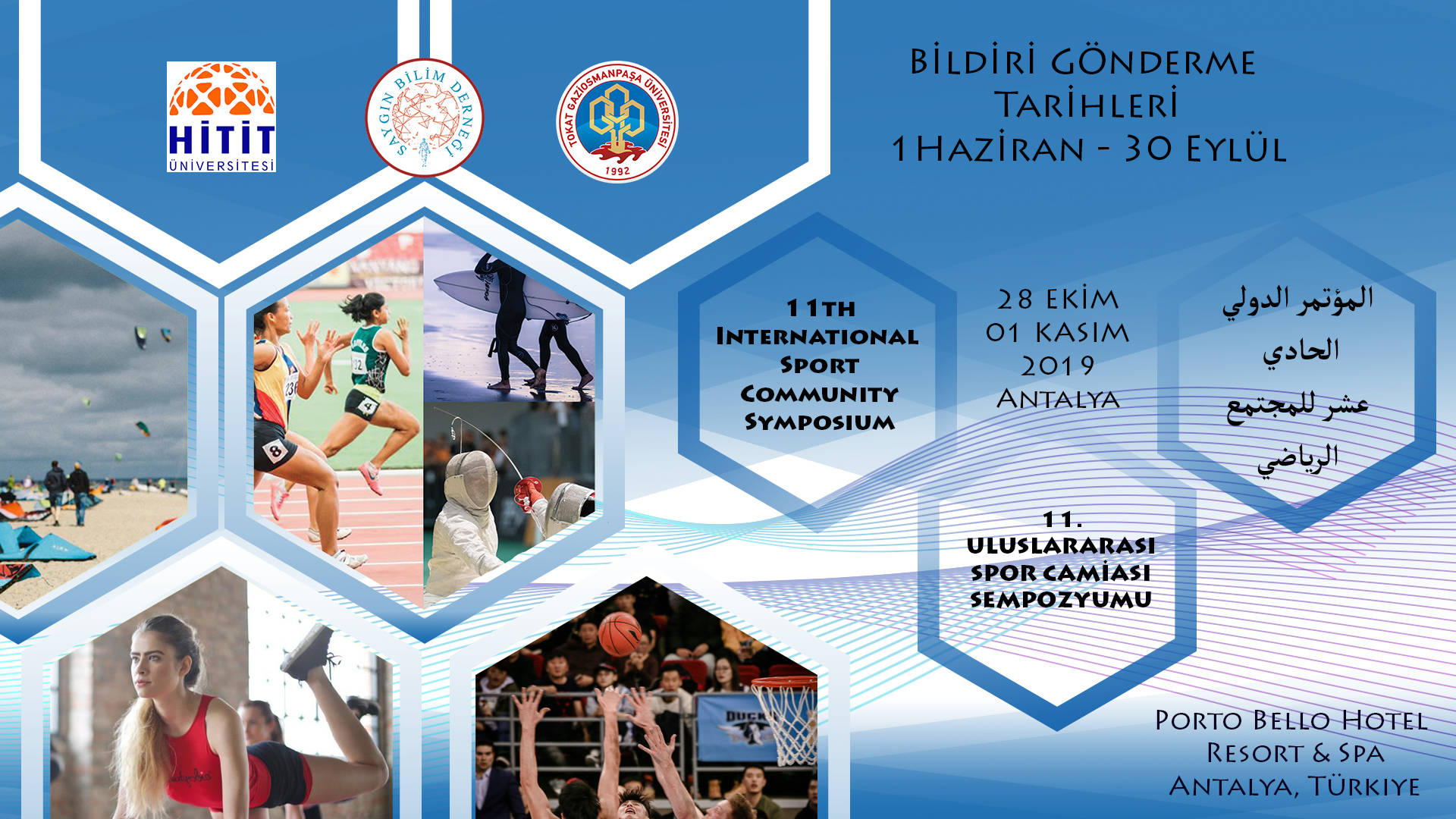 11. Uluslararası Spor Camiası Sempozyumu, 28 Ekim - 01 Kasım 2019 tarihlerinde Antalya’da Porto Bello SPA Hotel’de Hitit Üniversitesi ve Gaziosmanpaşa Üniversitesi başta olmak üzere pek çok yükseköğretim kurumunun desteği ve katkısıyla gerçekleşecektir.